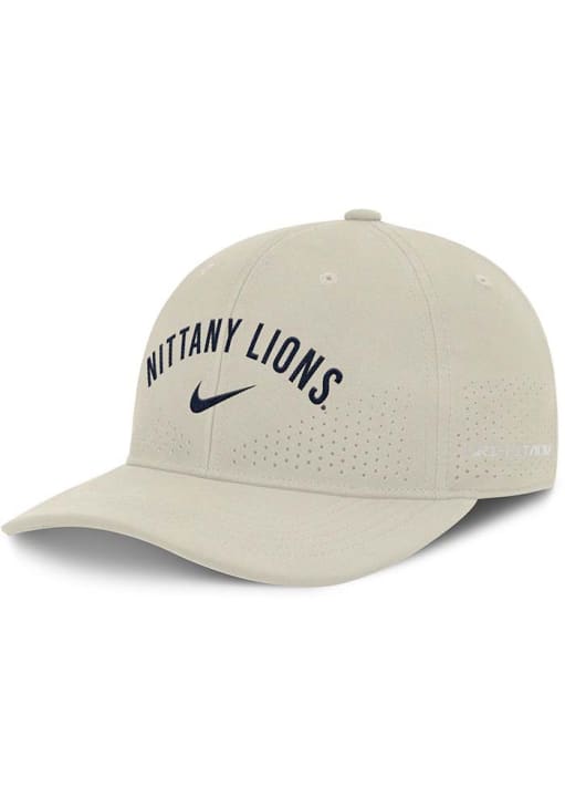 Product Details Product Details Nike Rise Performance Structured AdjustableFront embroidered team wordmarkNike swoosh on front of crownPerforation on front and back panelsBack plastic snap closurePOLYESTERCurved BillLow CrownStructuredWipe clean with cloth or cleaning kitImported Officially Licensed This Natural Nittany Lions Adjustable Hat features a front embroidered team logo.