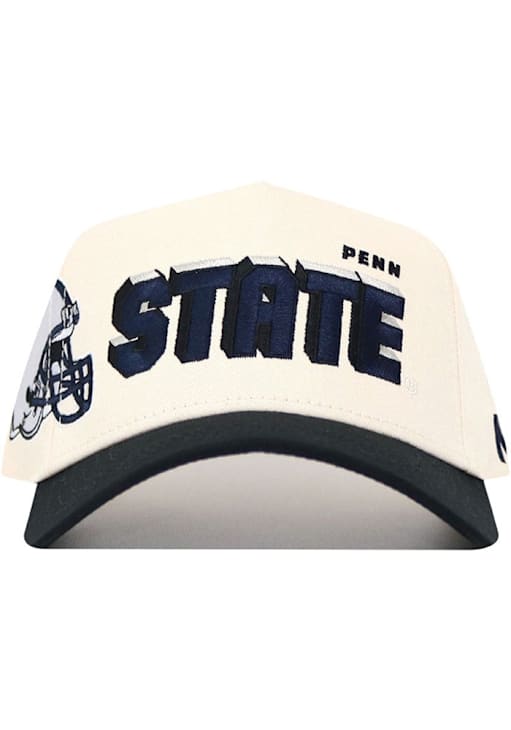 Product Details Product Details No Rivals Alma Mater AdjustableFront embroidered team nicknameSide embroidered team football helmetTwo tone crown and visorSide No Rivals logoBack plastic snap closureCOTTONCurved BillLow CrownA-FrameWipe clean with cloth or cleaning kitImported Officially Licensed This Natural Nittany Lions Adjustable Hat features a front embroidered team logo.