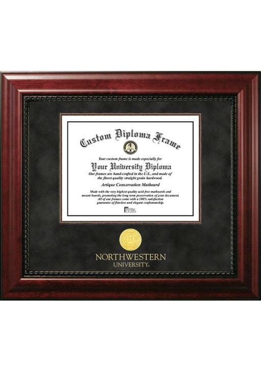Product Details Product Details Black suede matMahogany filet linerPremium wood moulding22-kt. gold-plated medallionIncludes dual hangers and a leveling kit Officially Licensed Northwestern Wildcats Executive Diploma Frame is a great way to keep your Wildcats memories close. You'll love looking at your favorite Wildcats moments with this Diploma Frame, which features a premium hardwood frame. Go U Northwestern!
