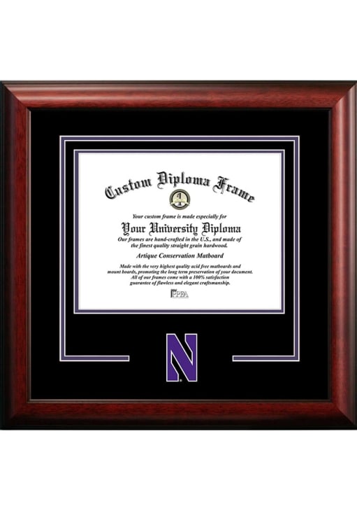 Product Details Product Details Laser-cut logoLogo artwork printed inside the cutoutMatboard compliments school colorsPremium wood mouldingIncludes dual hangers and a leveling kit Officially Licensed Northwestern Wildcats Spirit Diploma Frame is a great way to keep your Wildcats memories close. You'll love looking at your favorite Wildcats moments with this Diploma Frame, which features a satin mahogany frame. Go U Northwestern!