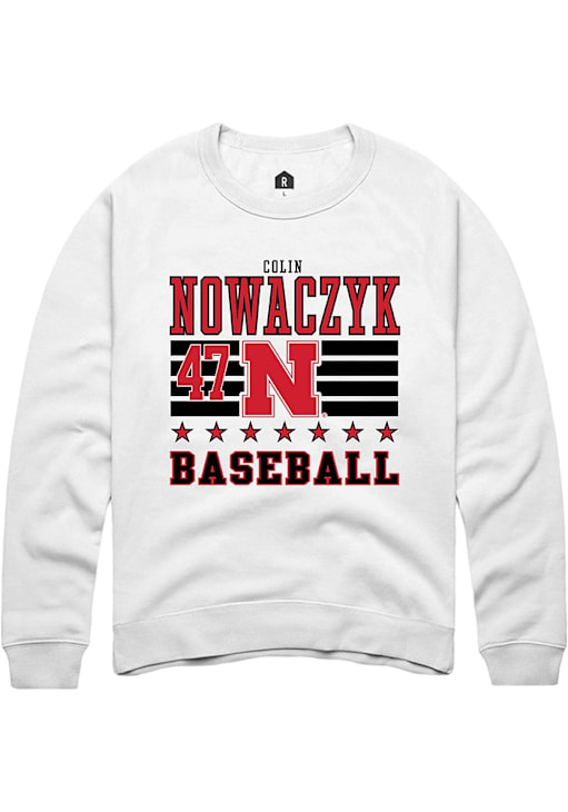 Colin Nowaczyk Rally Mens White Nebraska Cornhuskers NIL Striped Crew Sweatshirt