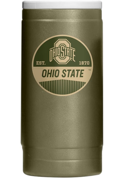 Olive Ohio State Buckeyes 12OZ Slim Can Powder Coat Stainless Steel Coolie