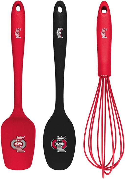 - Features printed team logo on the spatula and serving spoon and team wordmark on the handles for each utensil