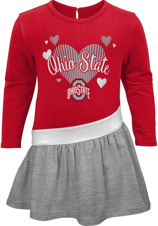 Size Chart for Baby Girls Red Ohio State Buckeyes Heart LS Short Sleeve Dress