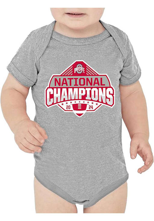 Your little Buckeyes fan will look adorable in this Baby Grey Ohio State Buckeyes 2024 National Champions One Piece! This Ohio State Buckeyes Romper features a screen print team graphic.