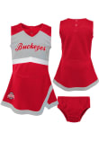 Product Details Product Details Self TapingSeparate pantySelf applique and embroideryCheer jumper dressPolyester soft piqueButton closure on backContrast color trim on skirtPerfect outfit for game day!100% Polyester Officially Licensed Get ready for gameday with this Baby Red Ohio State Buckeyes Captain Dress Cheer Dress! Your little Buckeyes will be warm and cozy at the game.
