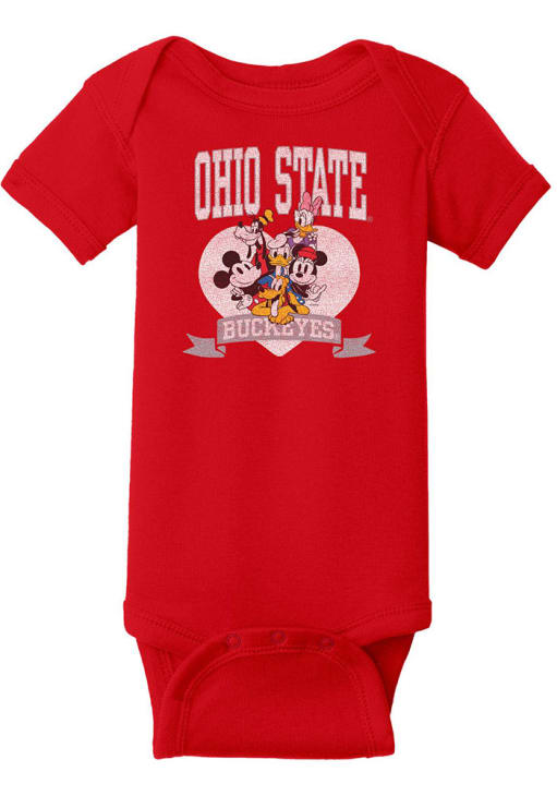 Your little Buckeyes fan will look adorable in this Baby Red Ohio State Buckeyes Disney Heart Troop One Piece! This Ohio State Buckeyes Romper features a Disney characters screen print graphic and team wordmark.