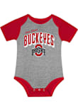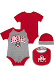 Product Details Product Details Creeper. bib.and hat setDouble sided bibSoft hand screen printSnap closure at crotchPerfect for any young sports fan!100% COTTONImport, Domestic Officially Licensed Your little Buckeyes fan will look adorable in this Baby Red Ohio State Buckeyes Dynamic Duo One Piece with Bib! This Ohio State Buckeyes Romper with Bib features a screen print team graphic.