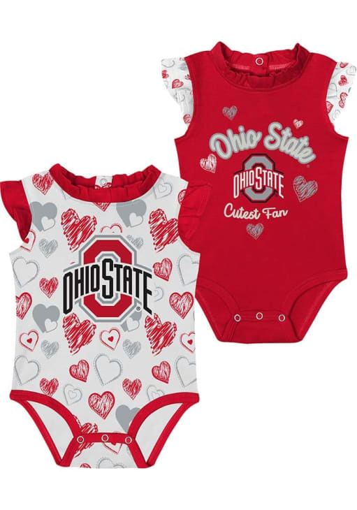 Baby Red Ohio State Buckeyes Happy Hearts Design One Piece Set