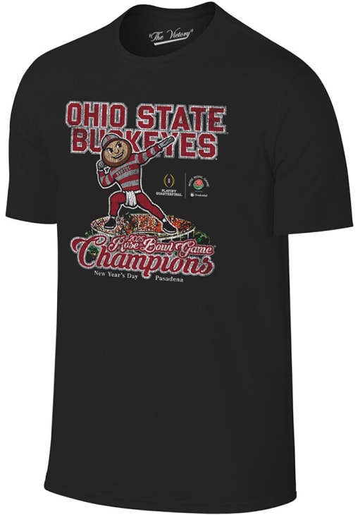 Display your team spirit with this remarkable Ohio State Buckeyes Black Football 2025 Rose Bowl Champions Short Sleeve T Shirt! The The Ohio State University Short Sleeve Tee showcases a team graphic screenprinted on chest that truly sets it apart. Stand out from the crowd and proudly declare your allegiance to the Buckeyes with this exceptional Black The Ohio State University T Shirt. Go Buckeyes!