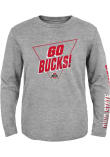 Support for your favorite team in this Boys Grey Ohio State Buckeyes For My Team Long Sleeve T-Shirt! This T-Shirt features a screen print team graphic, so everyone will know your favorite team is the The Ohio State University! This is the perfect Ohio State Buckeyes Boys T-Shirt for wearing to game day or everyday. Go Buckeyes!
