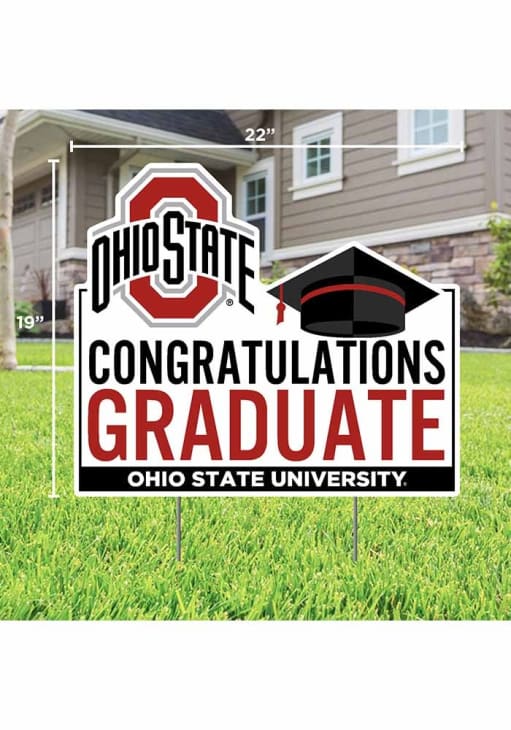 Product Details Product Details Approximatley 19"x22"Cut to Shape Weatherproof PlasticMetal Stakes IncludedFull Color PrintGraduation Sign Officially Licensed Ohio State Buckeyes Congratulations Graduate Yard Sign will let everyone know you root for the Buckeyes proudly. This Yard Sign features a weather resistant material.
