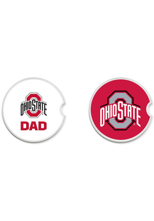 White Ohio State Buckeyes Dad Set of 2 Car Coaster