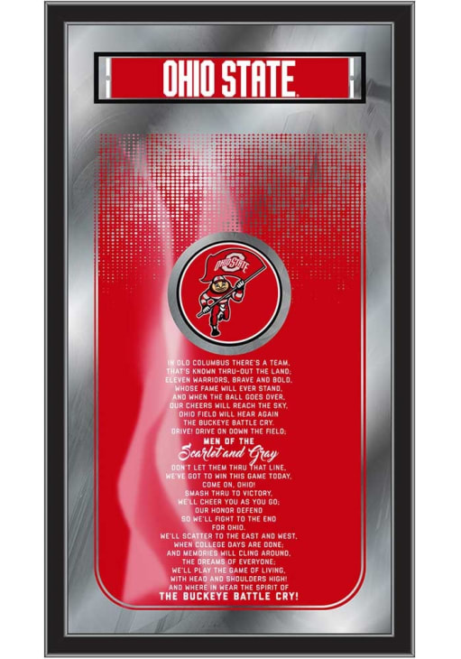 Product Details Product Details Vibrant, full color artwork1/8" glass with Mirrored Accents15" x 26" matt black wood frameSaw-tooth hanger for easy hangingGreat gift for any occasion!USA Officially Licensed This Ohio State Buckeyes Fight Song Hanging Back Bar Mirror is a great addition to show your Buckeyes pride. A great match to the game room bar, this Back Bar Mirror features a team logo that will be sure to draw attention to your fan cave.