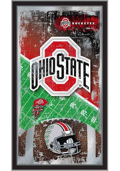 Product Details Product Details Vibrant, full color artwork1/8" glass with Mirrored Accents15" x 26" matt black wood frameSaw-tooth hanger for easy hangingGreat gift for any occasion!USA Officially Licensed This Ohio State Buckeyes Football Hanging Back Bar Mirror is a great addition to show your Buckeyes pride. A great match to the game room bar, this Back Bar Mirror features a team logo that will be sure to draw attention to your fan cave.