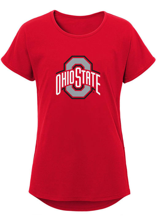 Support your favorite team in this Girls Red Ohio State Buckeyes Primary Logo Dolman Short Sleeve T-Shirt! This T-Shirt features a screen print team graphic, so everyone will know your favorite team is the The Ohio State University! This is the perfect Ohio State Buckeyes Girls T-Shirt for wearing to game day or everyday. Go Buckeyes!