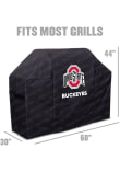 Product Details Product Details Velcro StrapsUV ResistantThis grill cover fits most standard grillsRepeat pattern all over coverGrill cover size 60”x44”x30” Officially Licensed This Ohio State Buckeyes Grill Cover is a great way to show off your Buckeyes pride and keep your grill safe. This Grill Cover features a team logo, so you can make sure everyone know you root for the Buckeyes.