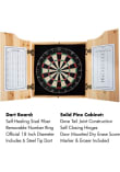 • Custom beveled wood dart board cabinet features an officially licensed logo on the front doors