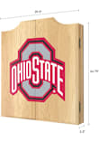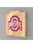- Custom beveled wood dart board cabinet features an officially licensed logo on the front doors