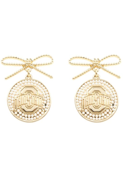 Product Details Product Details Pearl MedallionGold Team Logo with Bow TopFeatures gold plated BC trademark logo top Measures 1.5" in length Officially Licensed Stand out with these Ohio State Buckeyes Logo Pearl Bow Earrings from Rally House! Your dedication to the Buckeyes will shine with these Earrings featuring a team logo with pearls.