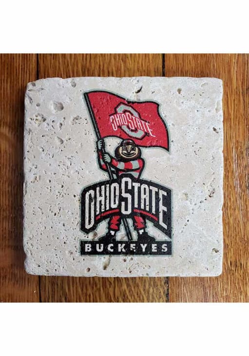 Black Ohio State Buckeyes Mascot with Flag 4x4 Coaster
