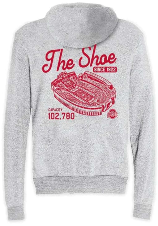Make a bold statement in this Ohio State Buckeyes Ash Football The Shoe Long Sleeve Fashion Hood! This The Ohio State University Long Sleeve Fashion Hood features a screen print graphic on front chest. Go Buckeyes!