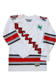 There will be no mistaking your The Ohio State University loyalty when you wear this Ohio State Buckeyes Mens White Diagnal Team Name Jersey! Look amazing on gameday in this Ohio State Buckeyes Hockey Jersey, which features a embroidered tackle twill decorations.