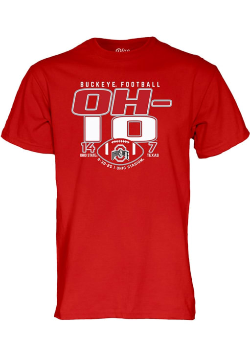 Display your team spirit with this remarkable Ohio State Buckeyes Blue 84 Red Football Football Beat Texas Score Short Sleeve T Shirt! The The Ohio State University Short Sleeve Tee showcases a screen print of team graphic on front chest that truly sets it apart. Stand out from the crowd and proudly declare your allegiance to the Buckeyes with this exceptional Red The Ohio State University T Shirt. Go Buckeyes!