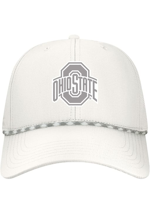 Product Details Product Details L2 RipperFront embroidered team logoRope across visorSix panel design with eyeletsPoly-Spandex blendBack snap plastic closurePolyesterCurved BillHigh CrownStructuredWipe clean with cloth or cleaning kitImported Officially Licensed This White Buckeyes Adjustable Hat features a front embroidered team logo.