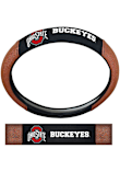 This Buckeyes Steering Wheel Cover features a logo and wordmark embroidered on top and bottom.