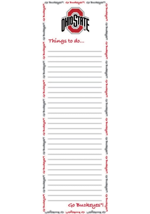 Product Details Product Details 2.75" x 8.5"50 sheetsMagnetic backTeam colors and graphicsGreat gift idea for any fan!Paper Officially Licensed Show your Buckeyes spirit at the office with this Ohio State Buckeyes To Do List Pad Notepad. This Notepad features a team logo on a to do list sheet.