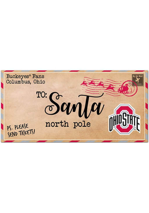 Product Details Product Details Digitally printedTeam colorsGreat for indoor home decorShow your team pride!Measures 6"x12"USA Officially Licensed This Ohio State Buckeyes To Santa Decor will make your home or office festive and ready for the holidays. This Decor features a team logo.