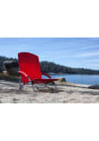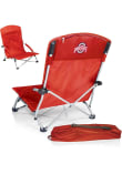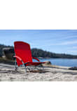 - Heavy-duty, fold-flat portable beach chair that has padded armrests