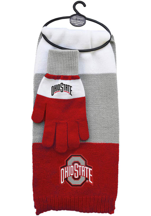 Product Details Product Details 100% Acrylic KnitSoft brushed finishCozy and warm for the stadium or the couchTeam logo chenille patchL 80" x W 15" Officially Licensed Make those chilly gamedays better with this stylish Ohio State Buckeyes Tricolor Glove Set Womens Scarf. Show Buckeyes pride with this winter Scarf featuring a matching gloves.