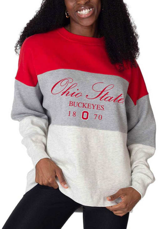 Gear up for the ultimate game day experience with this remarkable Ohio State BuckeyesWomens Grey Colorblock Crew Sweatshirt! Designed with the true fan in mind, this Buckeyes Long Sleeve Sweatshirt features a embroidered team name and logo on center chest. Stay warm and comfortable with this Womens The Ohio State University Buckeyes Crew Sweatshirt.