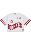This remarkable Ohio State Buckeyes Womens Cropped Fashion Football Jersey, showcasing a tackle twill team name and team logo on center front with established date and team name on center back. Elevate your admiration for Ohio State Buckeyes as you embrace this exceptional piece, designed to impress.
