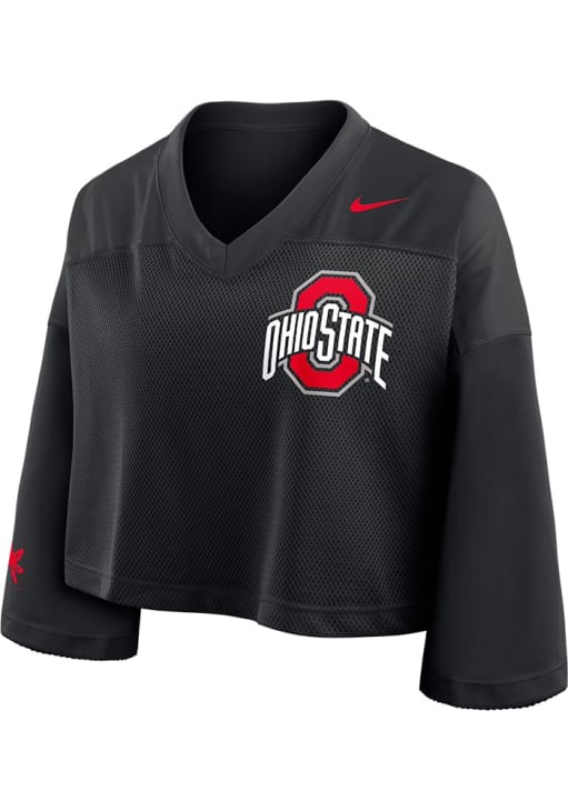This remarkable Ohio State Buckeyes Womens Crop Fashion Football Jersey, showcasing a screen print team log on left chest and team name and number on center back. Elevate your admiration for Ohio State Buckeyes as you embrace this exceptional piece, designed to impress.