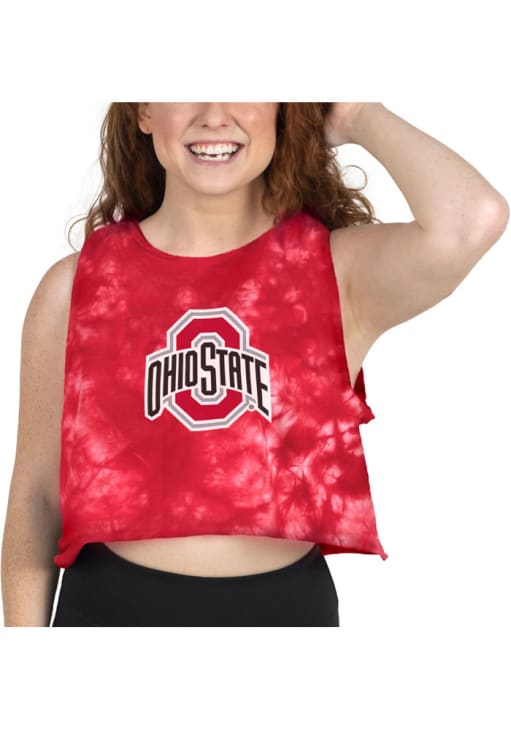 Elevate your tailgating style with this Ohio State Buckeyes Womens Tank Top. Stay fashionable and comfortable in the refreshing Red Cloud Dye Sleeveless Shirt. Discover the enticing details of this The Ohio State University Tank Top, showcasing a center front floral graphic team name that's sure to impress.