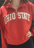Embrace the warmth and showcase your Buckeyes pride with our Ohio State Buckeyes Long Sleeve Qtr Zip. This Womens Red Cropped Long Sleeve Pullover offers a applique team name on center chest for the perfect combination of comfort and style. Elevate your everyday look with this must-have Ohio State Buckeyes Long Sleeve Qtr Zip.