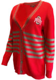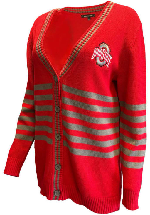 Gear up for the ultimate game day experience with the incredible Ohio State Buckeyes Womens Red Sassafras Cardigan! This Buckeyes Long Sleeve Top features a chenille team name on left chest with team logo on center back. Stay cozy and comfortable throughout the game with this high-quality Womens The Ohio State University Buckeyes Cardigan.