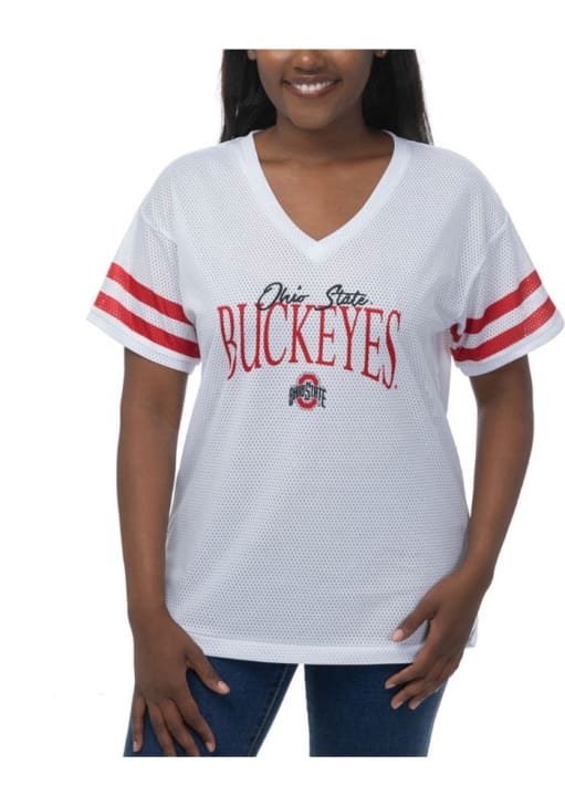This remarkable Ohio State Buckeyes Womens Subtle Fashion Football Jersey, showcasing a screenprint team name on center chest. Elevate your admiration for Ohio State Buckeyes as you embrace this exceptional piece, designed to impress.
