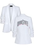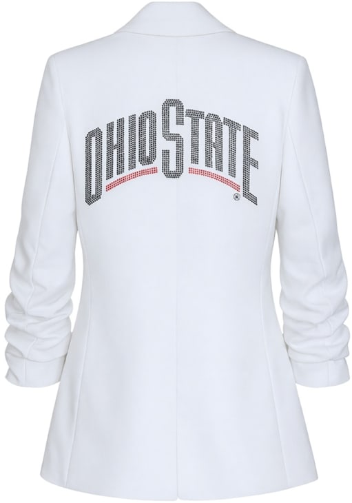 Stay warm and comfortable with this Ohio State Buckeyes Womens White Curve Blazer Medium Weight Jacket! Cheer on the Buckeyes in this The Ohio State University Medium Weight Jacket. With a crystal rhinestone embellishments, you won't want to be caught without this Medium Weight Jacket on gameday.