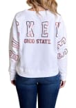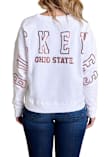 Gear up for the ultimate game day experience with this remarkable Ohio State BuckeyesWomens White Sequin Boxy Crew Sweatshirt! Designed with the true fan in mind, this Buckeyes Long Sleeve Sweatshirt features a sequin team logo on left chest and team name on center back. Stay warm and comfortable with this Womens The Ohio State University Buckeyes Crew Sweatshirt.