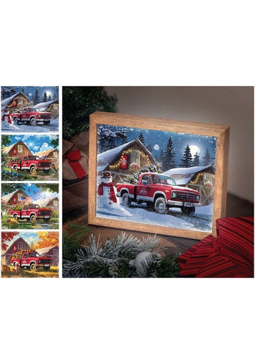 Product Details Product Details 1 - 10" x 8" wood frame box4 art images: Winter, Spring, Summer, Fall3 LED color optionsWood frame- 2” deepSwitch control with 4 buttonsUSA Officially Licensed Ohio State Buckeyes team logo Table Lamp is a great way to shed some light in your Buckeyes fan cave. This Table Lamp features a team logo.