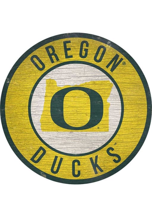 Product Details Product Details 12 inch diameterDistressed lookFeatures team logoFeatures team namePerfect decor for the office, home, or fan cave!USA Officially Licensed This Oregon Ducks 12 in Circle State Sign is great for decorating your home Ducks team spirit. Take your team spirit to the next level with this Sign, which features a team logo on team colored background. Go Ducks!