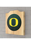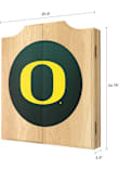 - Custom beveled wood dart board cabinet features an officially licensed logo on the front doors