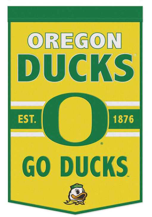 Product Details Product Details Measures: 24" W x 38" LEmbroidered with vibrant applique detailsStitched along entire borderDesigned with team name and logoImported Officially Licensed Oregon Ducks Established 1876 Wool Banner is a great way to show off your Ducks spirit. This Banner features a team logo.
