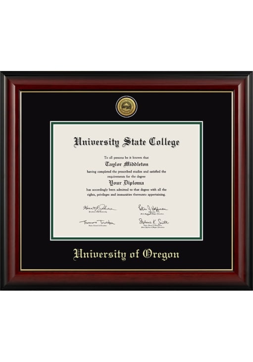Product Details Product Details Gold embossed school/organizationBachelors/Masters/PhDMedallion EngravedUSA Made Officially Licensed Oregon Ducks Medallion Lancaster Diploma Frame is a great way to keep your Ducks memories close. You'll love looking at your favorite Ducks moments with this Diploma Frame, which features a Showcase for your university diploma frame. Go Ducks!