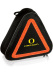 - The kit features a triangular-shaped tote with carry handle that doubles as a reflective hazard warning sign