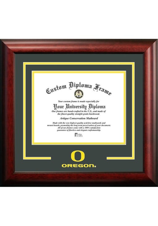 Product Details Product Details Laser-cut logoLogo artwork printed inside the cutoutMatboard compliments school colorsPremium wood mouldingIncludes dual hangers and a leveling kit Officially Licensed Oregon Ducks Spirit Diploma Frame is a great way to keep your Ducks memories close. You'll love looking at your favorite Ducks moments with this Diploma Frame, which features a satin mahogany frame. Go Ducks!